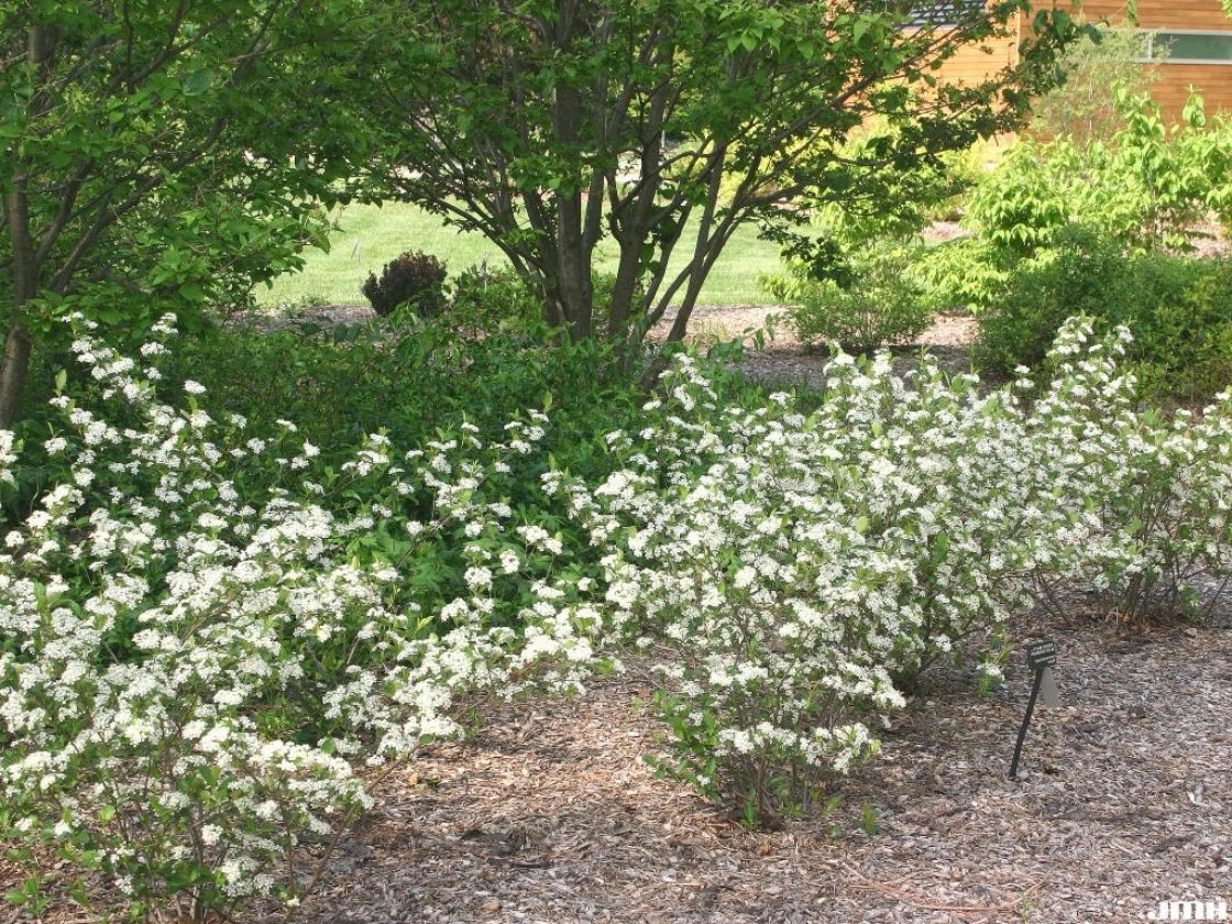 Grows to about 6 feet tall and will sucker to form a thicket, if the suckers are not removed. It can grow in boggy areas but it’s adaptable to medium moist soil. It has clusters of white flowers in the spring. For best fruit production it needs full sun. The fruit, as the names suggests, is very tart but it is edible, generally as jam, jelly, or juice. Can be subject to deer browsing.