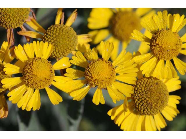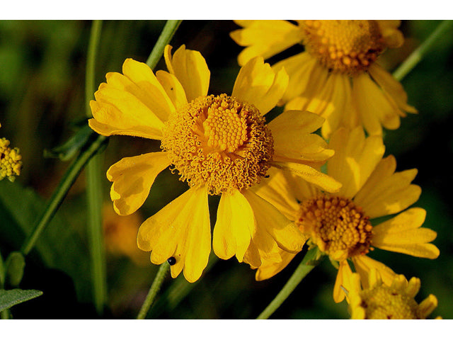 Sneezeweed flowers in late summer or fall. The common name is based on the former use of its dried leaves in making snuff, inhaled to cause sneezing that would supposedly rid the body of evil spirits. Grows in moist, open areas along streams & ponds, wet meadows.