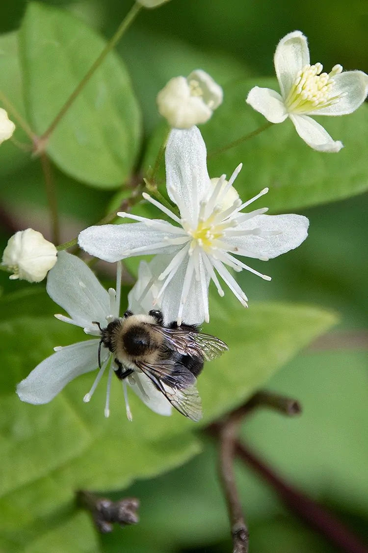 Virgin's Bower is usually dioecious, with male and female flowers produced on separate plants. Abundant flowering occurs regardless of gender, but the showy seedheads are formed from the female flowers. Our plants are unsexed at the time of sale, as they are not yet mature.