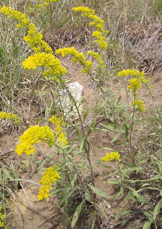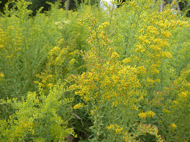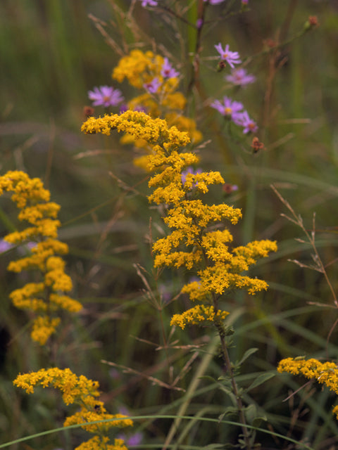 This is an excellent plant for a difficult spot where little else will grow. Field Goldenrod likes full sun and dry soil, even poor, rocky, clay slopes with little organic matter. The long, narrow inflorescence is somewhat wider in the middle and will nod down slightly when flowering for a month or so in the fall. Solidago nemoralis is one of the shortest Goldenrods, reaching 2' at most. Other distinguishing features include small winged leaflets on the main stem and fuzzy white texture on the leaves and stem. It tends to bloom later in the fall than other Goldenrods.