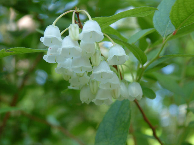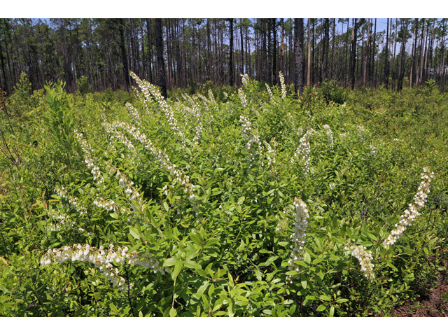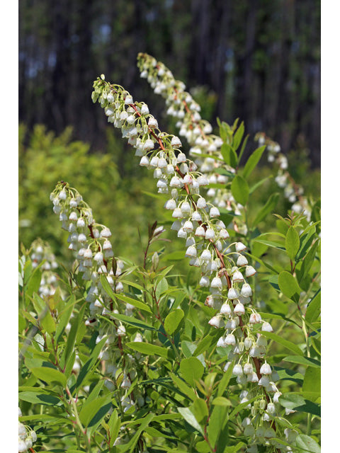 A small mound-shaped shrub, 3-6 ft., with tardily deciduous or semi-evergreen leaves. Arching twigs are reddish and the red-brown bark exfoliates. Wavy-edged, oval leaves are leathery and silvery-gray, becoming reddish-yellow and finally purple late in the season. Showy, one-sided, axillary flower clusters hold fragrant, bell-shaped, white blossoms. Grows in damp, sandy or peaty pine barrens; bay forests; hillside bogs.