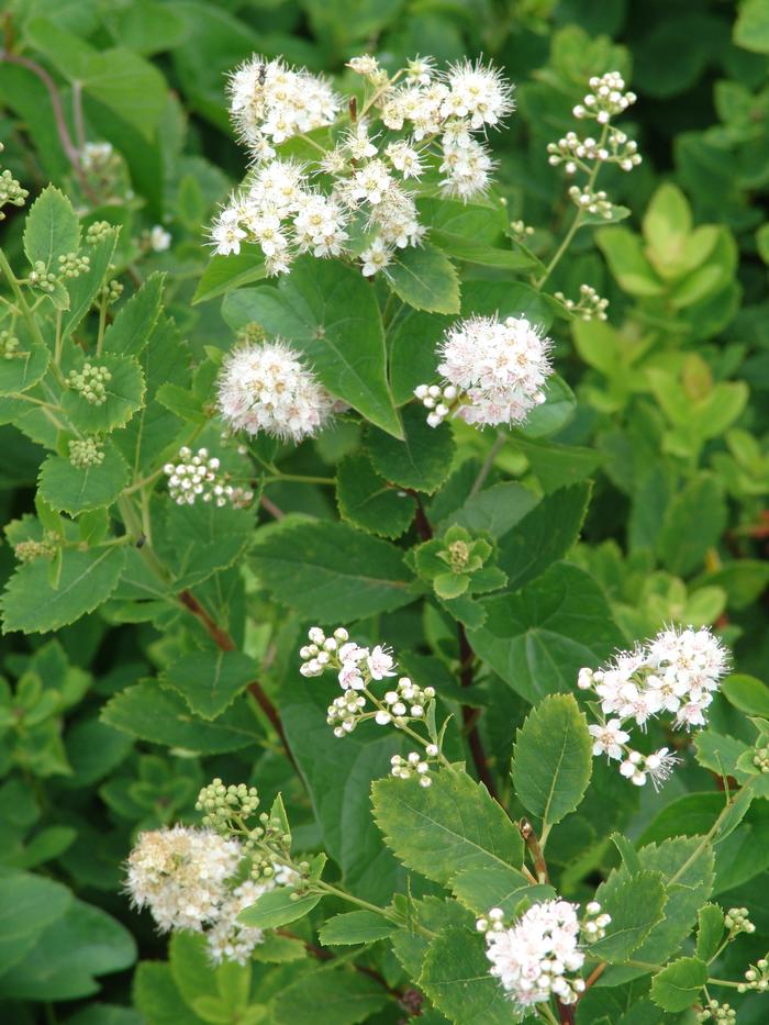 Meadowsweet grows in medium to wet but well-drained soil in full sun to part shade but it does best in full sun. The elongated clusters of white flowers can be tinged with pink. It blooms from June though August. The flowers attract bees and beneficial insects. Grows to about 4' tall.