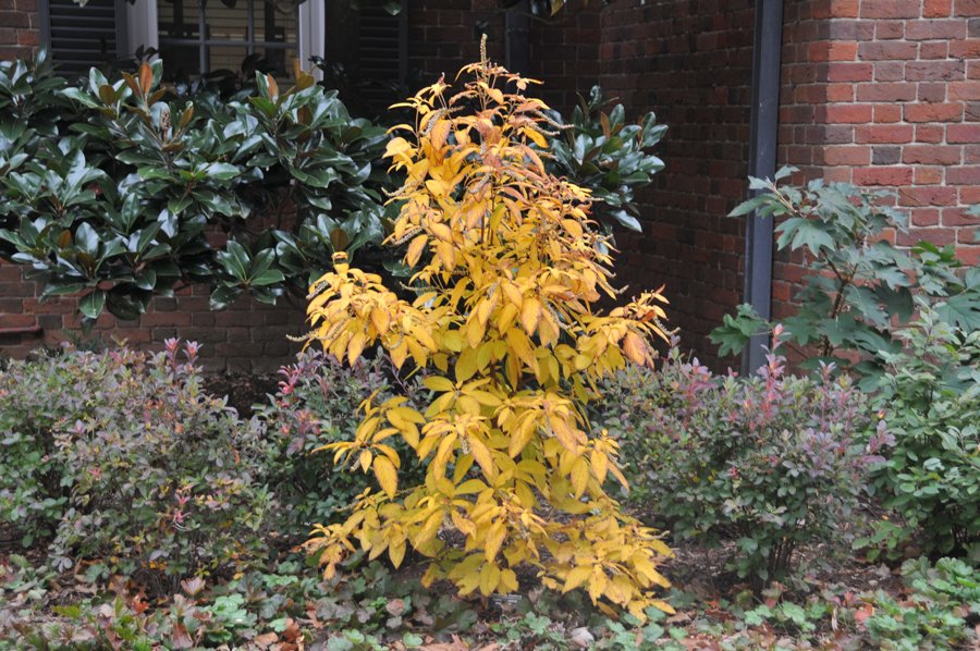 With its tiered branching habit, rich green foliage and abundant blooms, Mountain Sweet Pepperbush (Clethra acuminata) is an ideal plant for small landscapes. This multi-stemmed shrub is suitable as an understory plant in rich, acid woodlands. Mountain Sweet Pepperbush will grow 6-12’ tall and with age its outer bark exfoliates to reveal a cinnamon-colored inner bark. The small white flowers bloom from mid-July to August, are borne on 3-8” long spires, and open from the base to the tip. Mountain Sweet Pepperbush prefers a moist, well drained, humus-rich, acidic soil but will adapt to drier sites. It is tolerant of shady conditions though it flowers best with more sun. Combine this species with a groundcover of foamflower, drooping leucothoe, christmas fern, or cinnamon fern.