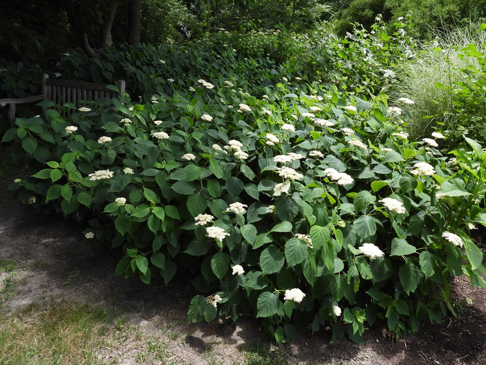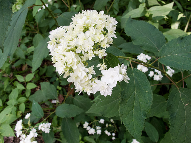 Smooth Hydrangea are particularly popular because of their rapid growth towards maturity and large blooming flowers within the leaves. These plants can reach a mature size of 60" in height and width, which makes them a great centerpiece or space filler in a yard. These plants are also great for borders in yards because of their natural, but stunning, appearance. The flowers typically do not have a strong scent from far away but do have a delightful scent when smelled close up. Smooth Hydrangea are a classic landscape shrub that is currently undergoing a garden renaissance. Their beauty, cultural adaptability, and ability to support wildlife make them a welcome addition to any garden in the northeast region and beyond. Larval host for the Hydrangea sphinx moth.