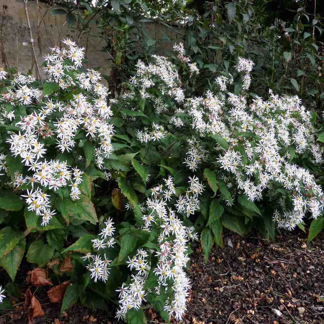 White Wood Aster is one of the first asters to bloom, brightening up the shade garden from late summer into fall. Numerous small daisy-like flowers with white petals and yellow centers are borne in loose clusters at the ends of the stems. Typically around 3’ feet high with an upright habit and spreading branches, the stems are slender and often reddish in color. The dark colored stems contrast beautifully with the white flowers, and the deep green foliage looks great all season.
